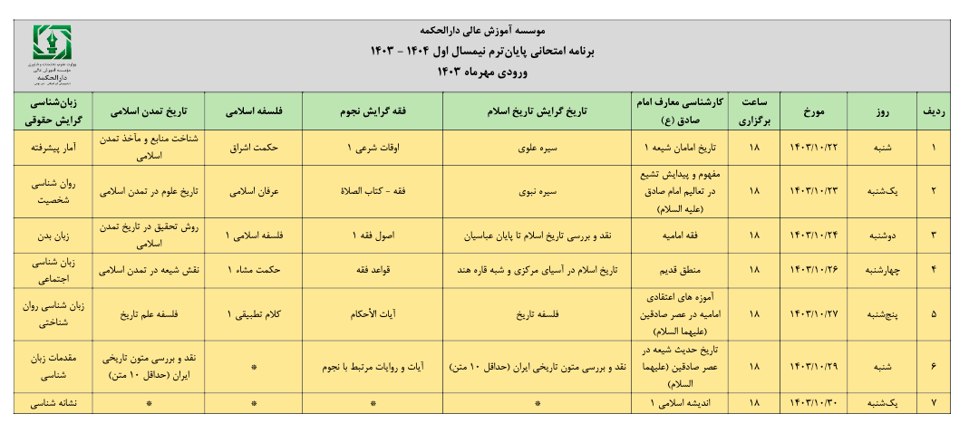 برنامه امتحانی نیم سال اول ورودی های بهمن 1402 اعلام شد: