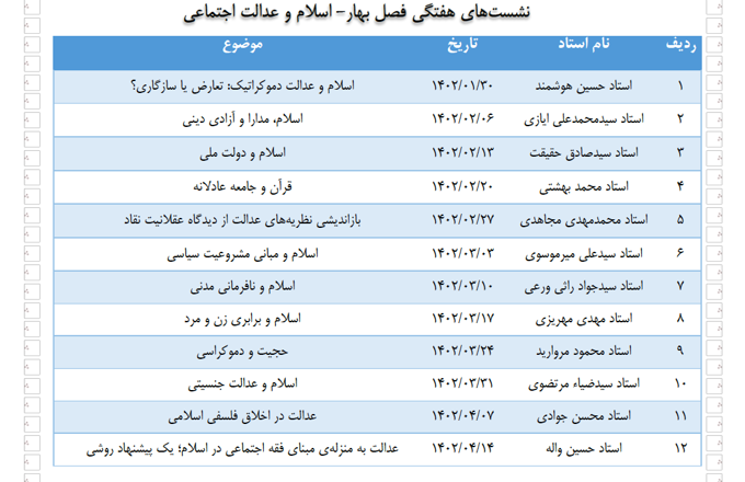 نشست های هفتگی فصل بهار: اسلام و عدالت اجتماعی